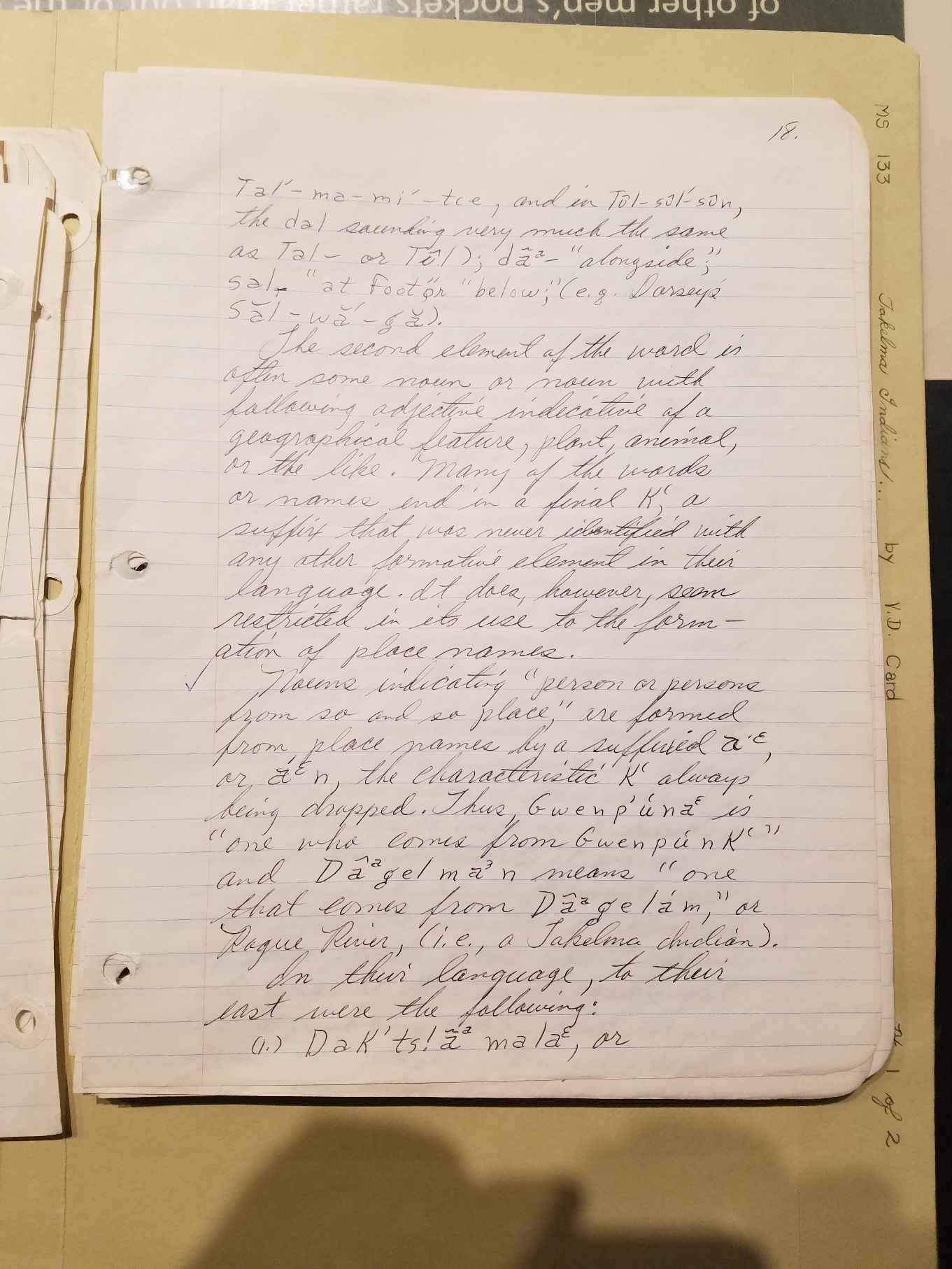 written, in English, as Takelma (the name of the Indians who inhabited