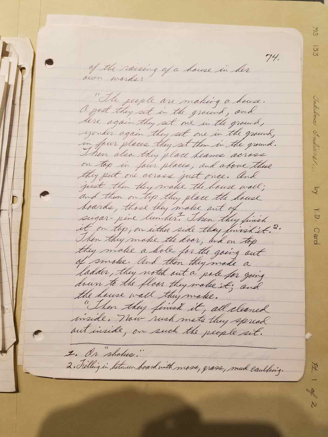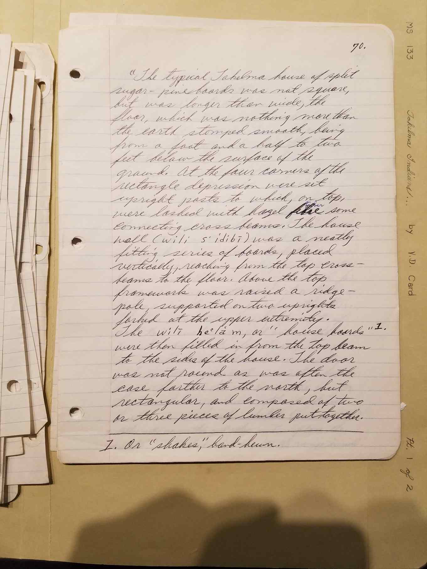 [Page 70] "The typical Takelma house of split sugar-pine boards was not square,
