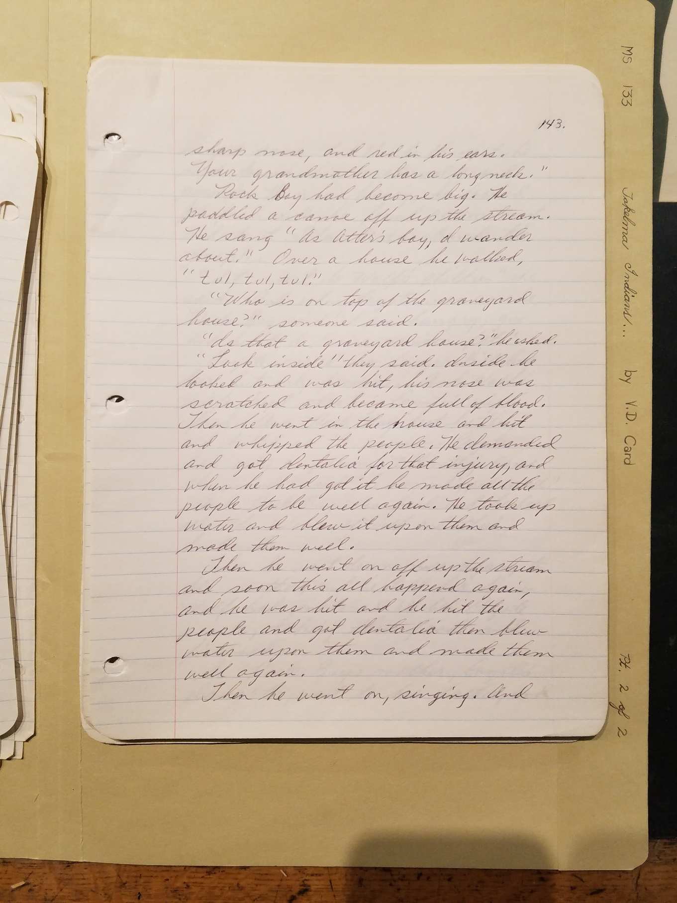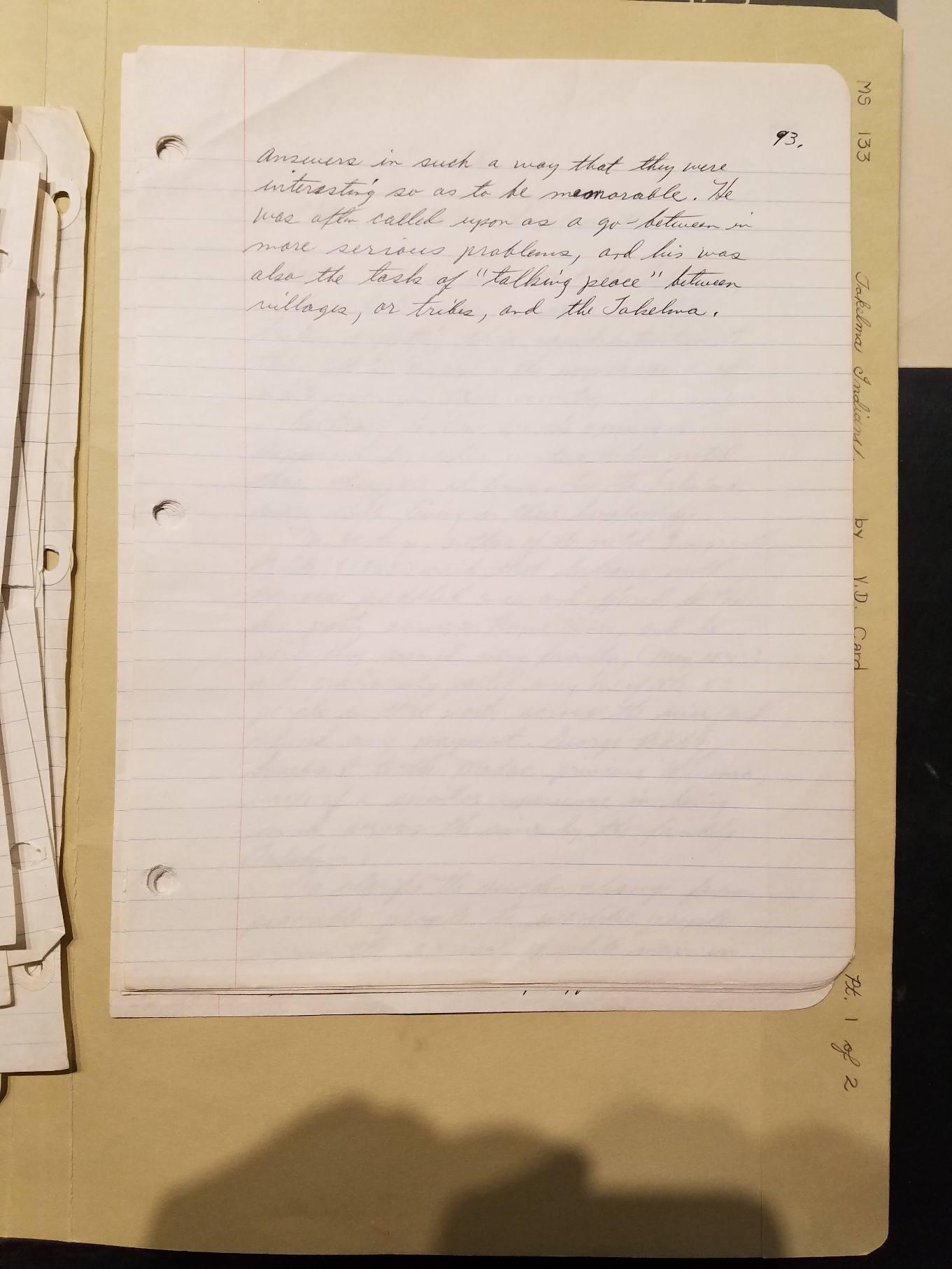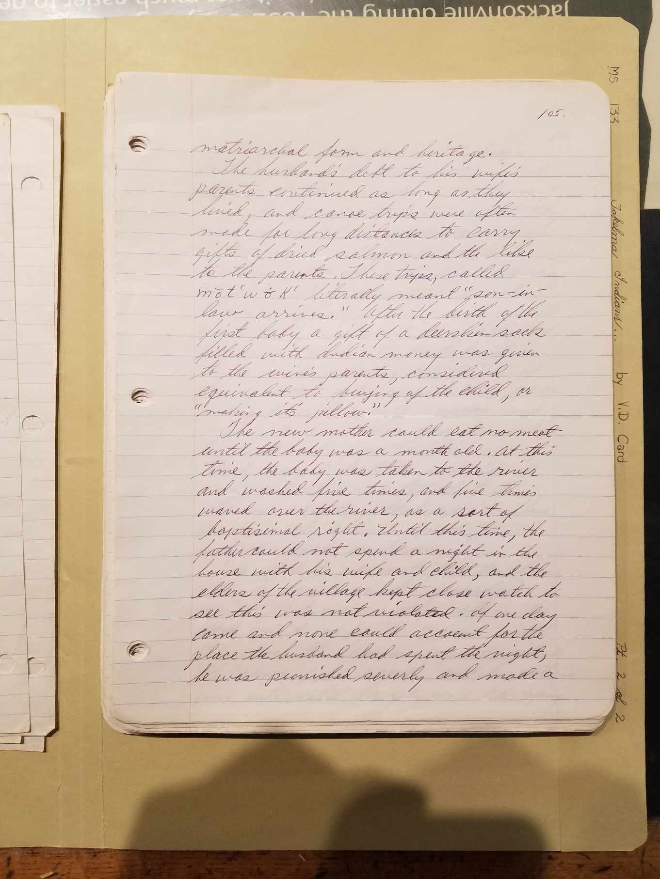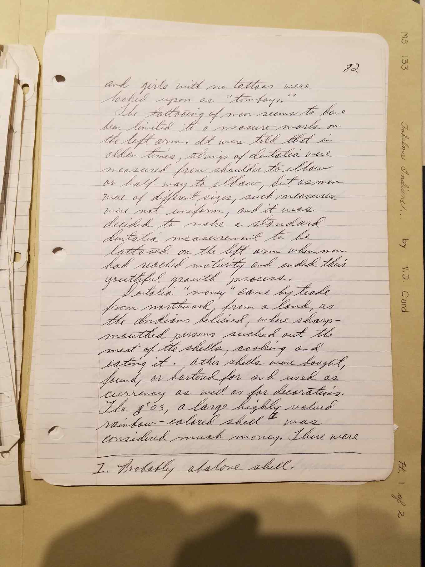 stole the girl and [Page 142] took her with him. Then, tis said, a stone he took up and put into her and into his own house he came with her. The girl was pregnant and gave birth to a child. Then Coyote missed his girl. He looked for her but found only her skirt by the water. Then he became a mourner. Before, Coyote always killed big deer, but now he could only kill fawns, and he was as a slave. Coyote did not know where his daughter had been taken away. Now the child was born and it grew. Now he became big. His mother told him "your maternal grandparents are living up the river." Then he traveled about in his canoe. "Mother, I shall go to see my maternal grandparents." Tis far away she said. There I will go he replied. You will be lost she said. I shall go! What is their appearance? "He is red-eared, sharp-clawed, [Card 143] sharp nose, and red in his ears. Your grandmother has a long neck." Rock Boy had become big. He paddled a canoe off up the stream. He sang "As Otter's boy, I wander about." Over a house he walked, "tul, tul, tul." Who is on top of the graveyard house? someone said. Is that a graveyard house? he asked. Look inside they said. Inside he looked and was hit, his nose was scratched and became full of blood. Then he went in the house and hit and whipped the people. He demanded and got dentalia for that injury, and when he had got it he made all the people to be well again. He took up water and blew it upon them and made them well. Then he went off up the stream and soon this all happened again, and he was hit and he hit the people and got dentalia then blew water upon them and made them well again. Then he went on, singing. And [Page 144] night came, but then he thought he had found his maternal grandparents. He was hungry, he looked for food and he found acorn mush and ate it. Then he awakened the people. It must be Wolf's children she said. And when Coyote was awake, Rock Boy said "I am hungry, go and hunt, I desire venison fat." Coyote could no longer kill big deer but only fawns. And Wolf's wife kept stealing Coyote's wife's food. And Rock Boy beat her then, and killed all the women. Coyote only had a fawn. When they came the women said "he has whipped us all." And Rock Boy was hard and he beat all the Women of Wolf and their husbands. Then he went down river again, to his mother, and he told her how Wolf had enslaved all her Coyote people, taking their food and firewood. So Rock Boy's mother, Coyote's daughter, went to her father, and [Page 145] her husband too, with a canoe ful of salmon. Coyote was very happy when he saw them, and their daughter returned, and Rock Boy had killed all the Wolf people.