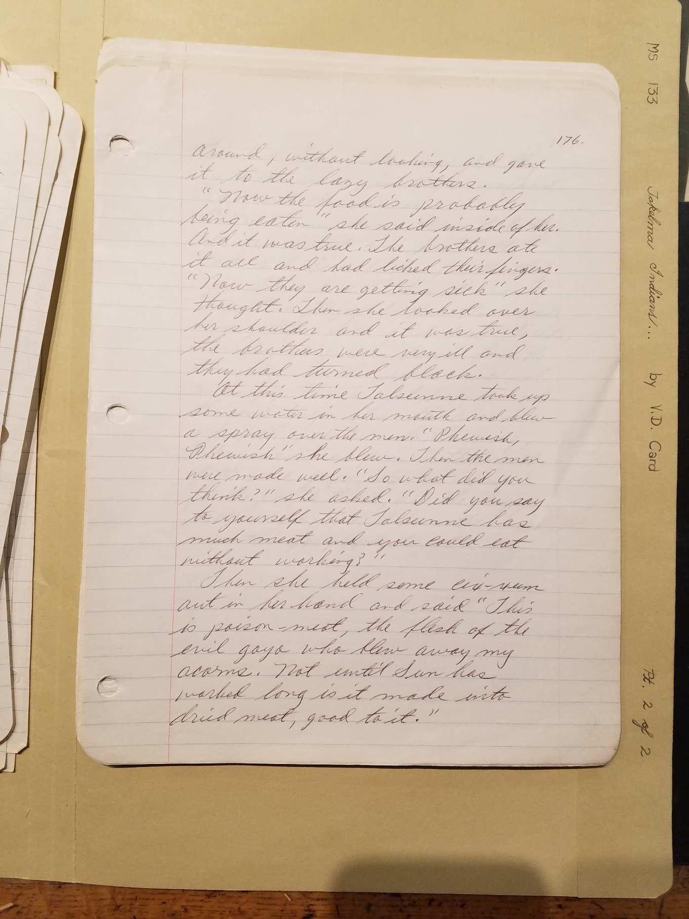 [people not shamans] have acorns?" This is[Page 174] the way he thought. "Acorns should be for goyos only" he thought. So he went up on little Wilam-cha [or Roxy-Ann mountain] mountain and gathered much wind in his chest. "Pooooh, Pooooh" he blew, like that. "Pooooh, Pooooh" he blew five times and then he blew all the acorns off of the trees. Now when all this was happening, Takunne was "singing" and twining a basket in her home atop Alwilamchadis. "Who is that going "Pooooh, Pooooh"" she asked. Then she looked out and saw the evil goyo blowing off the acorns she had caused to grow. Evil man, now you think the people will go hungry she said. She was very angry, then she came and got the bad goyo and destroyed him. "I will make dried venison of him" she said. This she did. There was so much cix-xum [Takelma word for jerky.] being made that her drying racks were stretched out very far, up one side of the [Page 175] mountain and down the other. And the smoke from her drying fires could be seen on the mountain. Now there were two lazy brothers who lived at Hatil [Located at the place where Butte Creek flows into Rogue River.] There were many women and children there who did much work, but the lazy brothers would not hunt or prepare food. One day as they sat and dreamed, they looked up and saw the smoke and Talsunne's "drying rack. "Talsunne has made much cix-xum" they said. "Let us go and get some of the meat for she won't care." Then they went. Something chirped to Talsunne and she knew the lazy brothers were coming, and why. When they walked into her house she did not look at them but kept her back to the fire. You have much meat the brothers said. Talsunne said nothing, only sat with her back to the fire. After a while she put some of the meat in a basket-plate and reached [Page 176] around, without looking, and gave it to the lazy brothers. Now the food is probably being eaten she said inside of her. And it was true. The brothers ate it all and had licked their fingers. "Now they are getting sick" she thought. Then she looked over her shoulder and it was true, the brothers were very ill and they had turned black. At this time Talsunne took up some water in her mouth and blew a spray over the men. "Phewish, Phewish" she blew. Then the men were made well. "So what did you think?" she asked. "Did you say to yourself that Talsunne has much meat and you could eat without working?" Then she held some cix-xum in her hand and said "This is poison-meat, the flesh of the evil goyo who blew away my . Not until Sun has worked long is it made into dried meat, good to it." [Page 177] The two lazy brothers were glad they were well now, but they were afraid and said they were sorry. Now you may return to Hatil, but you must come here in the fall and bear burden for this thing you have done. Thus it was. The two lazy brothers then made many trips with great burden-baskets, carrying cix-xum down from the mountain so the people would not go hungry. This is what happened when the evil goyo blew the acorns off of the oak trees. In this way Talsunne transformed the meat of the evil goyo into cix-xum for the people to eat, and the lazy brothers carried it down from the mountain for people to eat. |