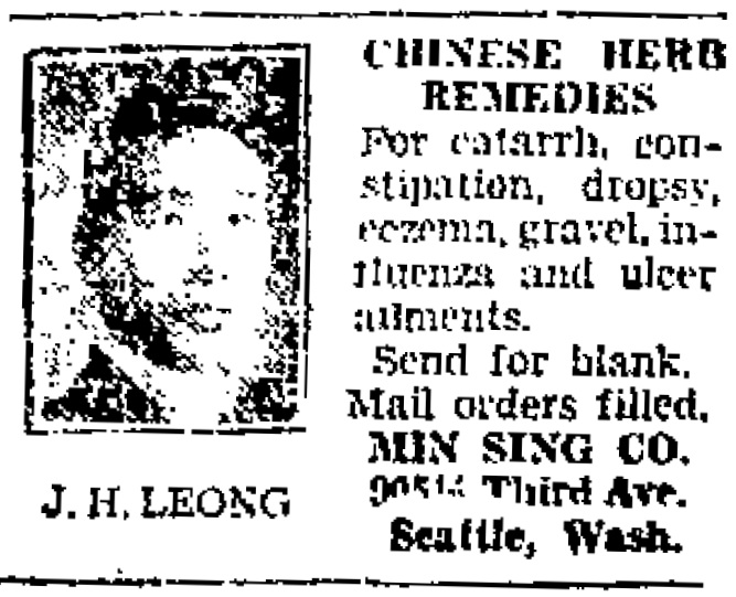 Yick So Herb Co., 5-6 Jackson County Bank Bldg.1942-43 Medford city directory In 1929 Leong had been dispensing in Seattle. ![]() January 12, 1944 Medford Mail Tribune ![]() October 31, 1944 Medford Mail Tribune Herbs and Roots