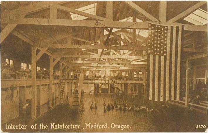 Rapid progress is being made in rushing the building to a completion, and within a few days the management will be ready to entertain the public. The natatorium is one of the largest in the West, and with the many added attractions it promises to be a resort unequaled by any town of the size of Medford. Medford Mail Tribune, July 3, 1910, page 1 NATATORIUM IS TO BE OPENED TO