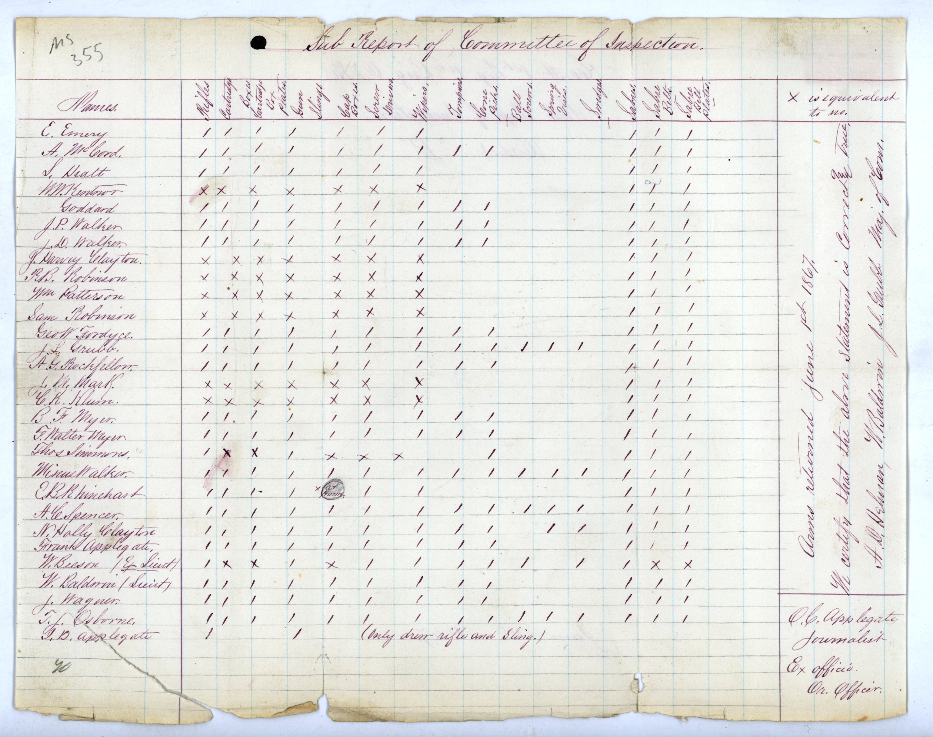 non-commissioned officers met at Ashland this day:July 28th, 1866 Captain A. D. Helman, Lieutenants Osborne & Baldwin, Sergeants Grubb, Robinson, Walker, Spencer & Applegate, Corporal Chas. A. Root.