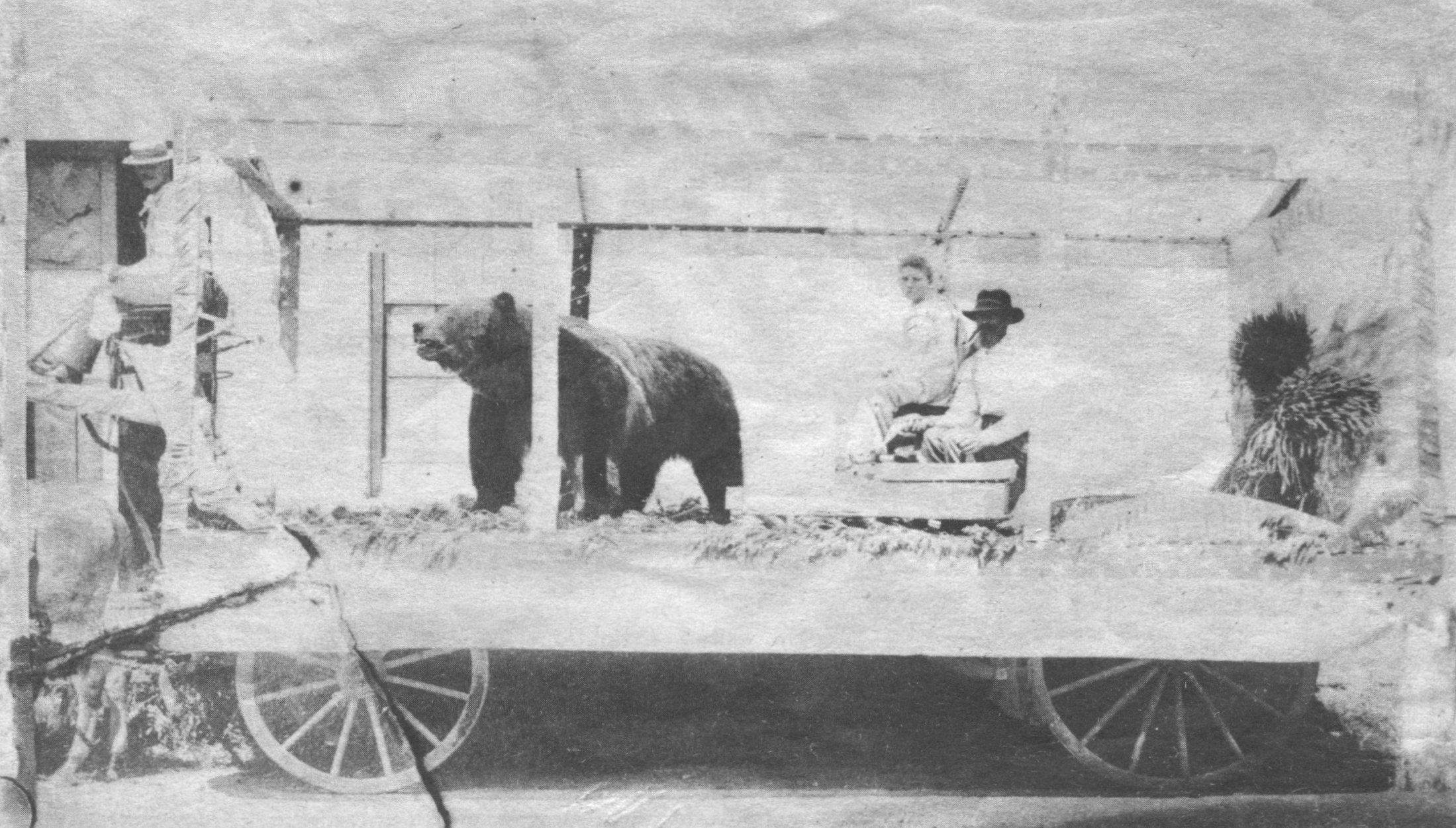 Hopkins, a member of an old pioneer family, is interested in gathering historical facts and pictures of the valley. His grandfather, Geo. H. Bailey, is mentioned as one of the hunters in the following story. The pictures and information are published through the courtesy of George F. Wright, nephew of William A. Wright and Robert and Fred Bean of Phoenix, sons of Purl Bean. Mrs. Mildred Ager of Memory Lane Studio assisted in compiling the facts into the following story. Other pictures of "Old Reelfoot" may be seen in the windows of Memory Lane Studio. Back in the 1860s, grizzly bears were quite numerous in Southern Oregon and Northern California. As most of these were only average grizzlies, little attention was paid to those killed. Around 1869 an enormous grizzly made his appearance on this range in both Klamath and Jackson counties, his favorite haunts being the wild canyon region of the Siskiyou Mountains in the neighborhood of Pilot Rock, and thence eastward [sic] to Mt. Pitt. There he started his notorious career of killing cattle, and except for his huge tracks there was no way of distinguishing his killings from those of other grizzlies. He was of gigantic proportions, even more prodigious in strength and ferocity than the grizzlies usually found roaming the mountains, the difference shown in his finer hair. This race of mightier grizzlies were well known in California in the days of the earlier settlers, and they were greatly feared, but there are only a few of the monsters left, and these inhabit regions seldom or never penetrated by man. His peculiar track was caused by the loss of three of the claws of his left forefoot, which he had torn off in a huge trap set by Bruce Grieve of Fall Creek, a well-known stockman and noted bear hunter. The loss of these claws caused the left foot to turn outward at the heel as he walked, and hence the name "Old Reelfoot," or "Clubfoot." The less crafty grizzlies disappeared rapidly from this range, but Reelfoot had become a terror to the stockmen of the country. He was well known by his tracks and by the way he killed and afterwards treated his victims. Hundreds of cattle were killed by him in the mountains, and his tremendous strength enabled him to kill a full-grown steer with as much ease as an ordinary bear would kill a calf. It was known that he would rush upon a steer, usually from a point of vantage on an elevation above his victim, bearing him to the ground with his immense weight and strength, would close his powerful jaws over the animal's back, just behind the shoulders, and crush the bones of the shoulder and back just as a terrier would kill a rat. Many were the cows and steers that were found killed this way, and about the carcass would be found the telltale tracks of Old Reelfoot. He continued his raids on the herds, while eluding the most carefully made trap sets and skilled hunters. Most bears after killing an animal will eat of the carcass until it is about all consumed, but this cunning fellow, apparently knowing the danger to himself from the rifles of hunters would hardly ever return to a carcass after leaving it, and seldom ate more than one meal from a beef that he killed. By keeping well concealed in the daytime and traveling at a rate almost impossible for man or horse to keep up with in the mountains, the bear had baffled the efforts of the best hunters in Oregon and Northern California to kill or trap him. He was seldom, if ever, seen by the hunters, but his unmistakable tracks were often found, and his trail could be followed by the dead cattle left in his path. Among those having the larger herds and suffering the heavier losses were Major Barron of Ashland and Dave Horn of Hornbrook. These stockmen, along with others, finally combined and offered a reward of $2700 for his scalp. This stimulated the hunters of this region to extraordinary efforts, and many a hard day's tramp and lonely night's watch resulted only in confirming the hunters in the belief that Reelfoot could not be caught. William A. Wright tried repeatedly to trap him, but always failed. Then he tried the plan of setting a loaded gun to kill him. The intelligence and cunning of the bear was soon evident. Mr. Wright at one time arranged a loaded gun in such a way that he thought it impossible for the bear to get at the bait without standing where he would receive the charge of the gun, and his astonishment was great when he found that the bear had studied out the combination for himself, and had taken the bait without being hurt by the discharge of the gun. He approached the gun from the lower side of the tree, where Mr. Wright thought he could not get, and then rising upon his hind feet and placing one paw against the tree for support, he had reached around with the other paw and taken the bait. The gun went off all right, but the bear was safe, for he was on the side of the tree next to the butt of the gun. The record of the whole proceedings was left in the soft ground about the tree (for it was muddy at the time), and in the mud [the] imprint of the bear's actions were shown almost as certainly as if he had been seen touching off the gun. Again and again Mr. Wright tried every plan known to hunters to effect his capture, but always failed, and for a time gave up trying to kill him. Hunting parties of five or more together hunted for him again and again, but all to no avail. His tracks were seen and he was known to be in the vicinity, but he kept out of sight and far in advance of the hunters. Among others who had tried repeatedly to hunt down the bear were George Crook, George H. Bailey, Henry Moore, W. H. and Joe Shepherd, William Hollingsworth and Thomas Wright. On April 10, 1890, William A. Wright and Purl Bean, the latter a boy of 17, started out to try once more to capture Reelfoot. After a long and weary tramp over the rough country southeast of Pilot Rock in northern Siskiyou Country, they came upon Reelfoot's tracks. After many hours of c