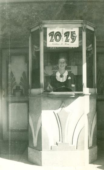 ![]() Gene Childers, circa 1934 The projectionists were Walt and Don Williams. They were Mae Childers' nephews. These two, along with their father, were the janitors. The prices of the theater tickets at this time were 20¢ for adults and 10¢ for children. On November 15, 1936 the prices raised to 25¢ adults and 10¢ kids. This was a small theater compared to the Holly and the Craterian. The seating capacity was about 500. The lobby was quite small. The floor was a red carpet, and there were red drapes at the aisle openings. The interior walls of the theater were paintings of early history scenes--Indian pictures and scenes of Crater Lake--just beautiful. The middle section seated about 20 in each row, with the seating of four on each side. This was a two-aisle theater. The back row four-seat section was equipped with earphones for those hard of hearing. The aisles were quite steep, which made it hard on the usherettes. I was an usherette along with Juanita Hjorton when the theater first opened. I remember well the uniforms we wore. They were blue jumpsuit style with a gold jacket and sash. For our winter uniforms we wore a green jumpsuit style with a large white collar and white cuffs. We girls took the collar and cuffs home to launder. The other usherettes during my time at the Roxy were Katherine and Maxine Robinson, Peggy Moran and Bernice Shellenbarger. ![]() Verna Forncrook at the Roxy, 1934 As cashier at the Roxy, my wages were $9.00 a week. For this I worked in the afternoon for the matinees, evening shows and all day Saturday and Sunday, which were running continuously. There were three changes of pictures a week, with a Saturday-only showing. These Saturday pictures drew a lot of kids. They would be waiting at the box office for me, anxious to keep up with their Saturday cartoons and serials. At one time the price of a children's ticket was 5¢ if they sat in the first 10 rows of the theater. This made room for the adult attendance. Many kids were 12 years old for a long time. Those who were 12 or under got in for the 10¢ price. ![]() At first the owner, Gene Childers, forbade anyone eating popcorn in the Roxy, although the Craterian and the Rialto had popcorn machines and sold popcorn for 5¢ a bag. This brought in business at their theaters. Finally after a time popcorn was brought to the Roxy from the Craterian, kept hot with a machine. At last the patrons could eat popcorn there also. ![]() The