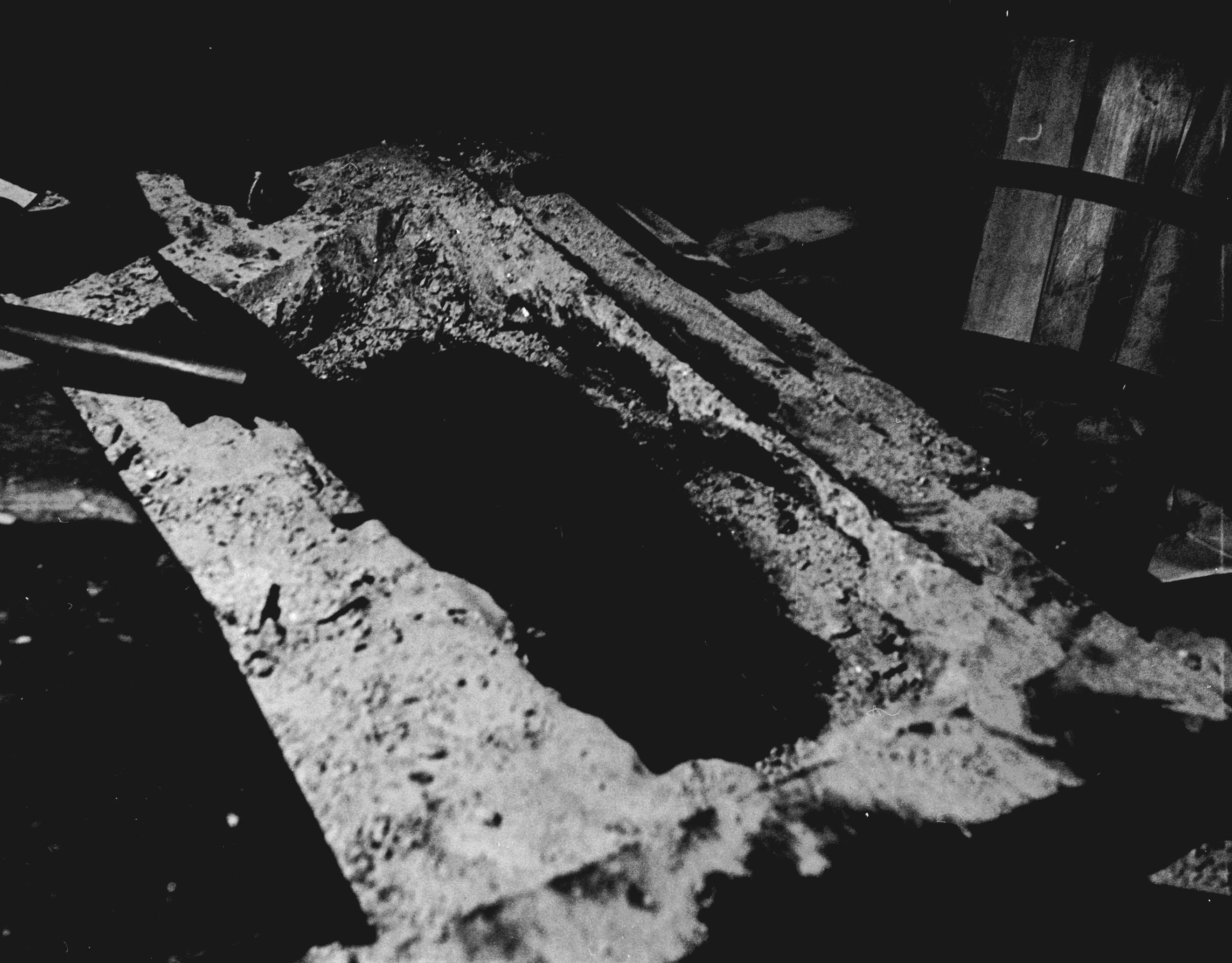 entrance. A hole was drilled through the top of the DeBold safe at a