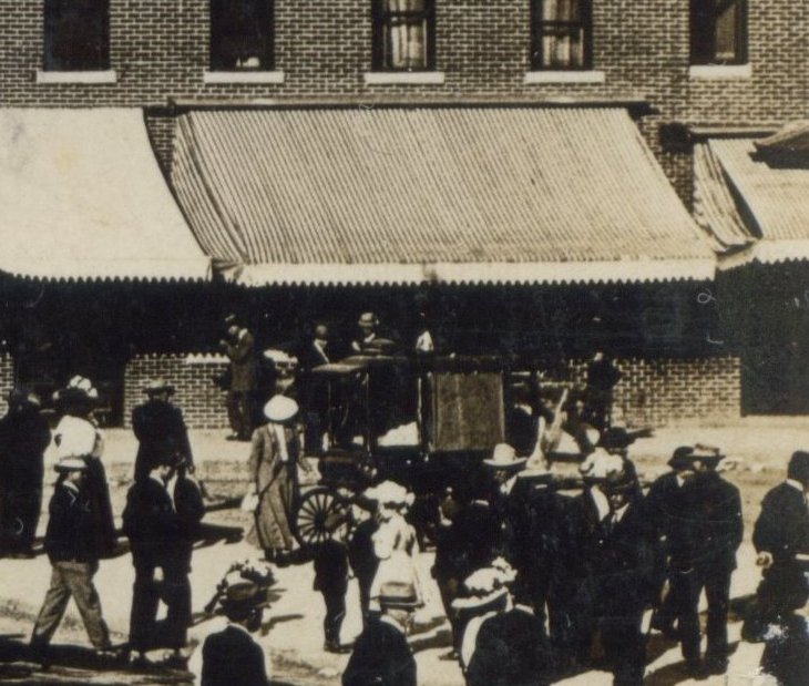 Frank Wilson:--"No, that isn't an automobile, that's a peanut roaster on wheels of the latest improved kind. It is made to be pushed around and roast peanuts at the same time. The people of Medford will soon have 'da peanuta' fresh roasted delivered at their own doors. The roasting is done by steam heat, and the machine is surely up to date." "City Happenings," Medford Mail, February 14, 1902, page 7 Reckless Shooting.