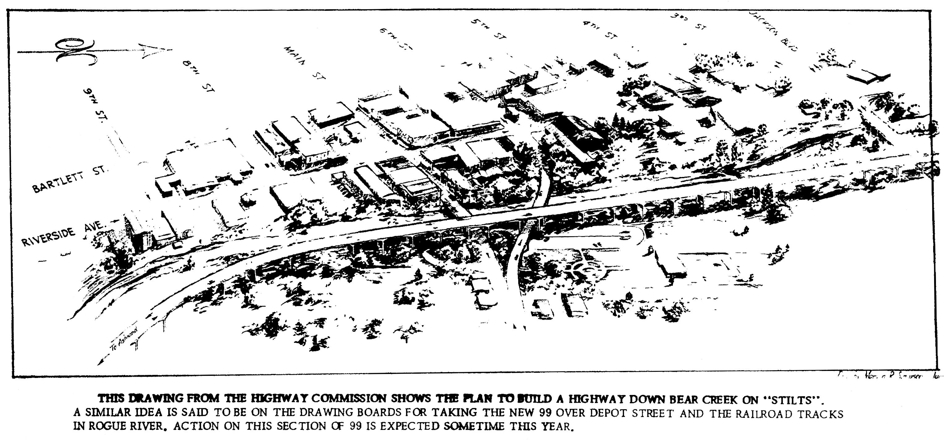 The Viaduct Story Click here for more about Interstate 5. ![]() Rogue River Times, February 11, 1955 Location of Freeway Undecided, Highway Engineer Declares